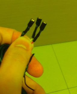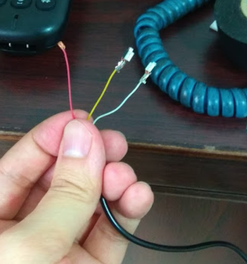(1) 做線:把AUX線剪需要的長度,將最外層絕緣(通常是黑色皮)剝開,會看到三條線,分別是紅色(右聲道R)、白色(左聲道L)、地線(顏色不一定,有的是裸線)